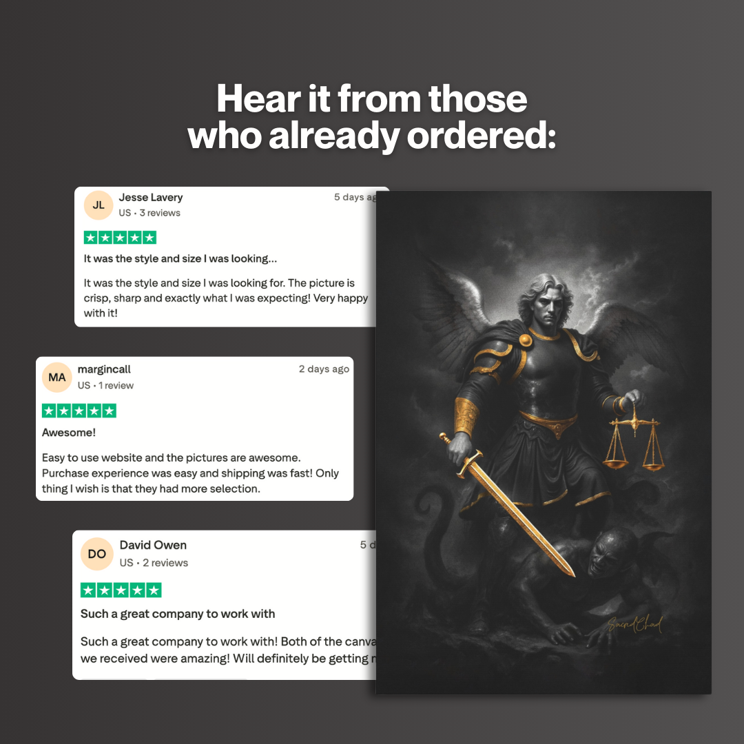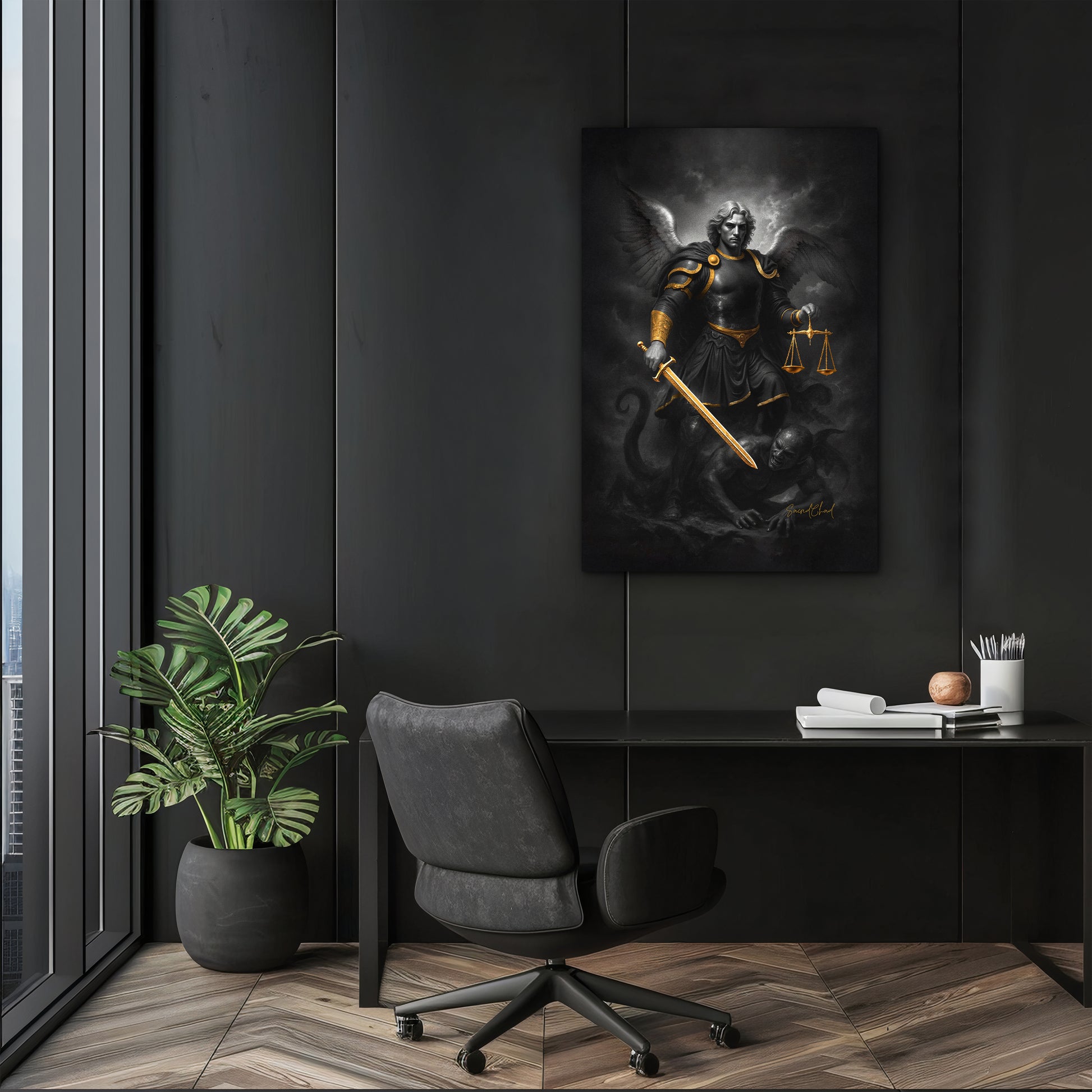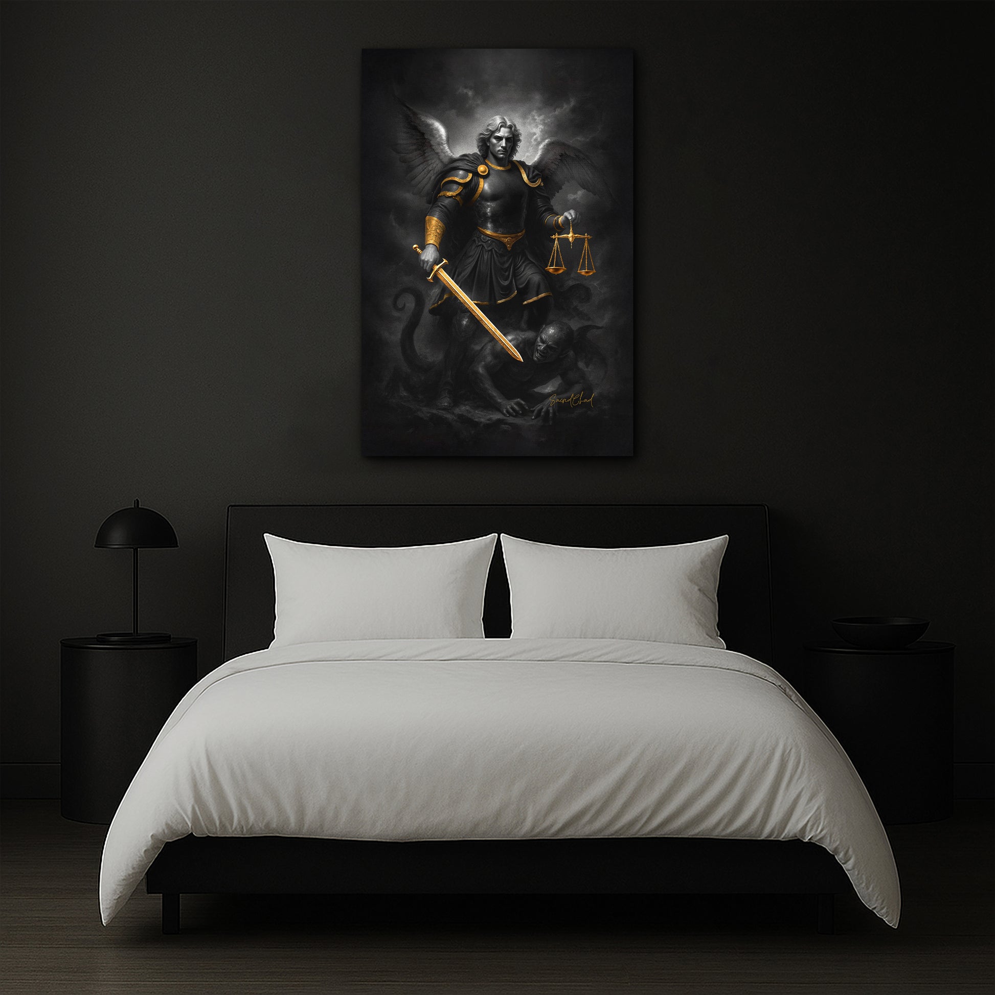 A powerful and realistic portrayal of St. Michael the Archangel, commander of Heaven’s armies, standing victorious over Satan. With radiant strength, he embodies the eternal truth that evil will not prevail. Known in Latin as Quis ut Deus meaning “Who is like God,” St. Michael remains the protector of the faithful and a timeless symbol of divine justice and protection.